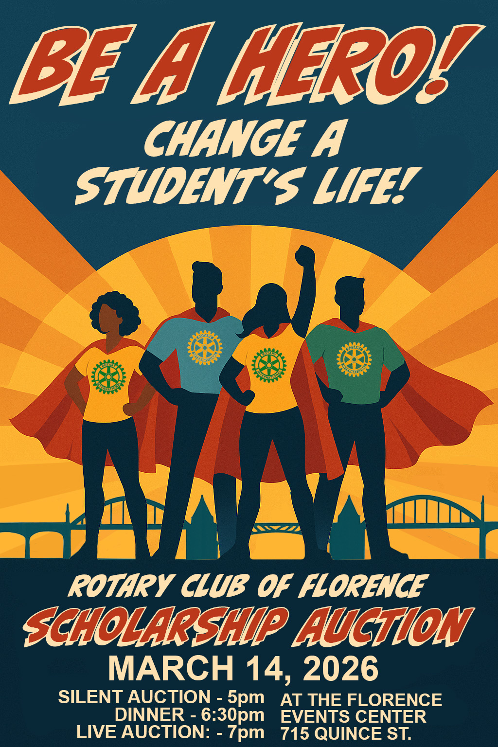 Get ready to dress up, have fun, and make a difference! The Rotary Club of Florence Scholarship Auction returns Saturday, March 14, 2026, with this year’s theme: “Be a Hero! […]