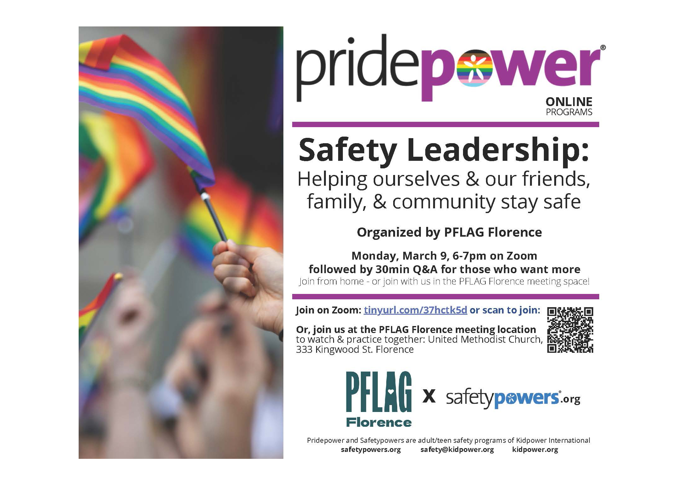 PFLAG hybrid meeting March 9 features LGBTQ safety issues PFLAG Florence welcomes teacher and facilitator Erika Leonard via Zoom to members and friends for a fact-filled, eye-opening program around the issue of LGBTQ+ community safety leadership on Monday, March 9. The meeting begins at 6 p.m. in the Fellowship Hall of Florence United Methodist Church […]