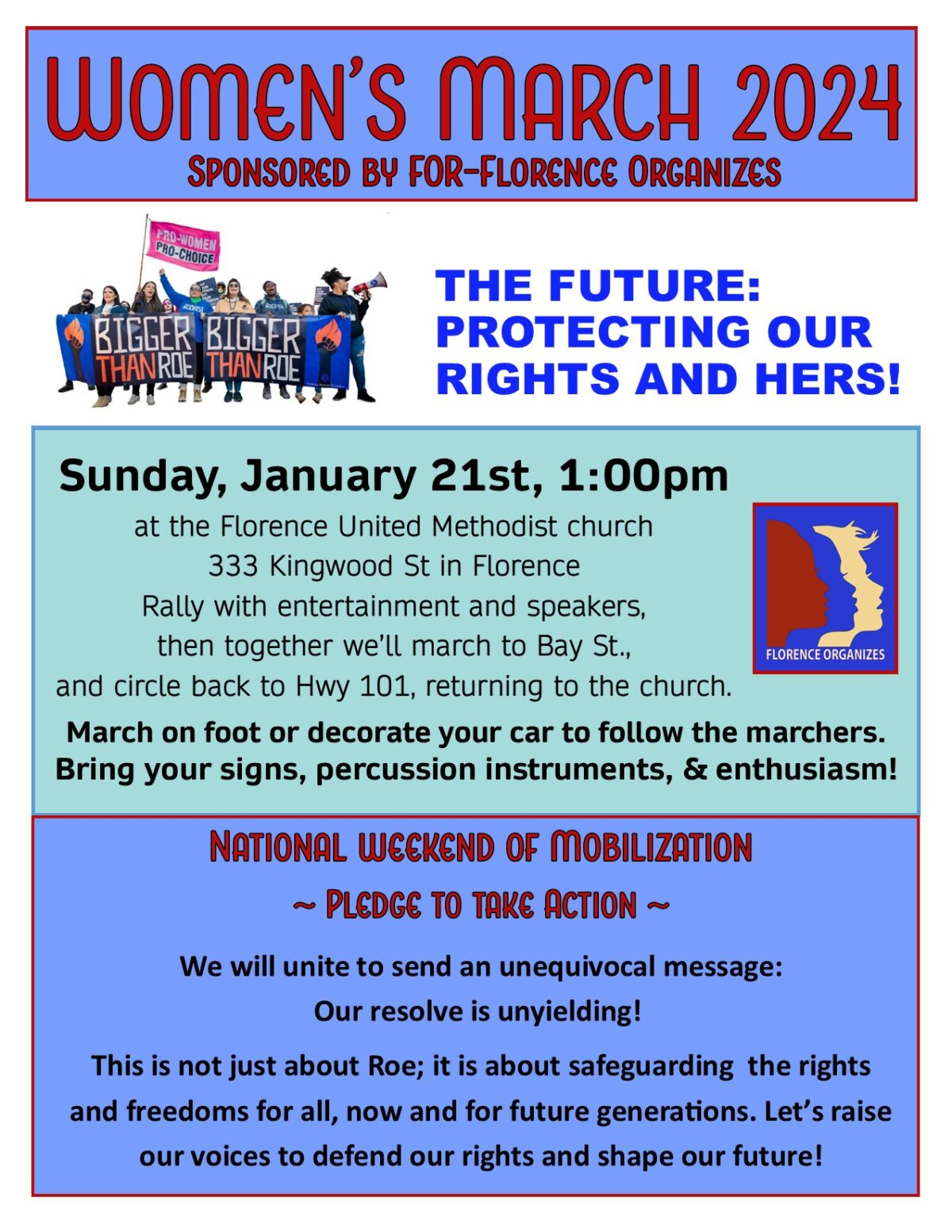 Women’s March 2024 Post author By FOR Post date January 3, 2024 Join us for our annual march for Women’s Rights! Tags family, free, kids-welcome, music, outdoors, senior adults